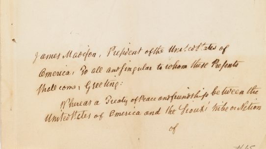 This 1815 treaty between the United States and the Sioux of the Lakes sought to reestablish peace after the War of 1812. It stipulated mutual forgiveness for past hostilities and renewed friendly relations. The Sioux acknowledged U.S. sovereignty and protection. The treaty was signed by U.S. commissioners and Sioux chiefs and warriors at Portage des Sioux. It aimed to restore the tribes to their pre-war status with the United States.